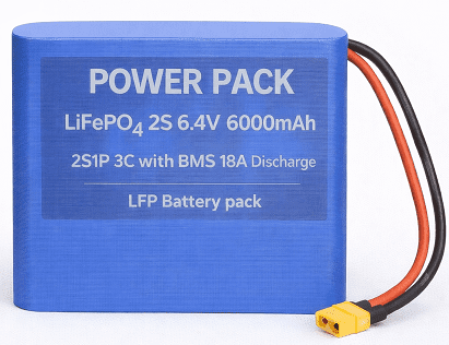 Power pack LiFePo4 2S 6.4V 6000mAh 2S1P 3C with BMS 18A Discharge LFP Battery pack